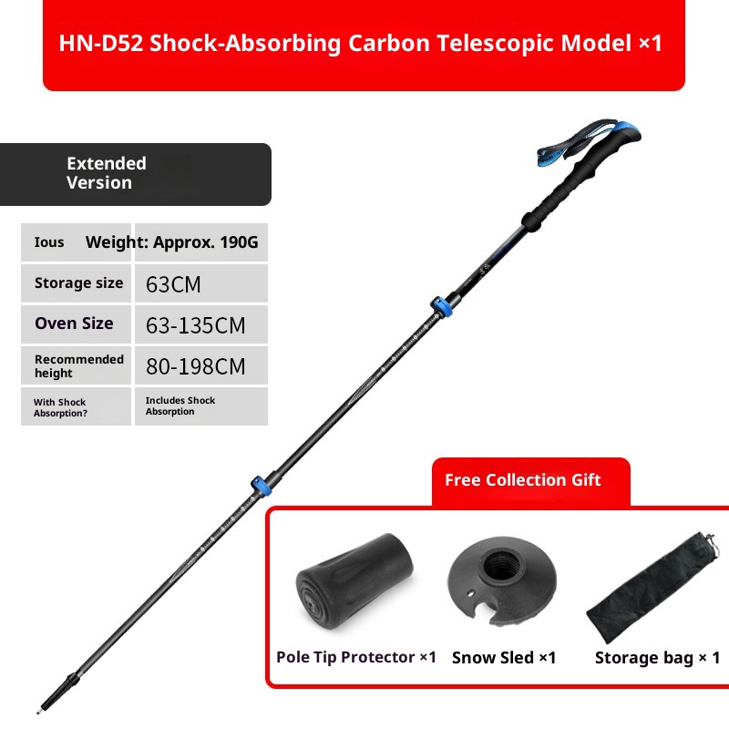Brand:Hana,Product Category:Climbing Poles,Material:Carbon Fiber,Weight:About 230g,Item Number:HN-D52 HN-D62,Origin:Ningbo, Zhejiang,Size:63-135cm/95-135cm,Model Number:HN-D52/HN-D62,Color:HN-D52 Carbon Fiber Telescopic Model with Shock Absorption Single Pack, HN-D62 Carbon Fiber Folding Model with Shock Absorption Single Pack,Is it exclusively for cross-border export supply?:No,Children's Exclusive:No,Patent Type:None,Foreign Trade Export Certification:-,Quality Inspection Report Number:-