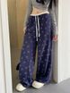 1509 # 2024 Autumn Printed Splicing Wide Leg Casual Pants for Women, Lazy and Relaxing in Autumn, Straight Leg Pants, Long Pants