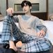 Pánské jarní pyžamo, dlouhý rukáv z čisté bavlny, nový styl 2023, velikost CAUAL+, podzim a zima, vhodné k pobytu doma