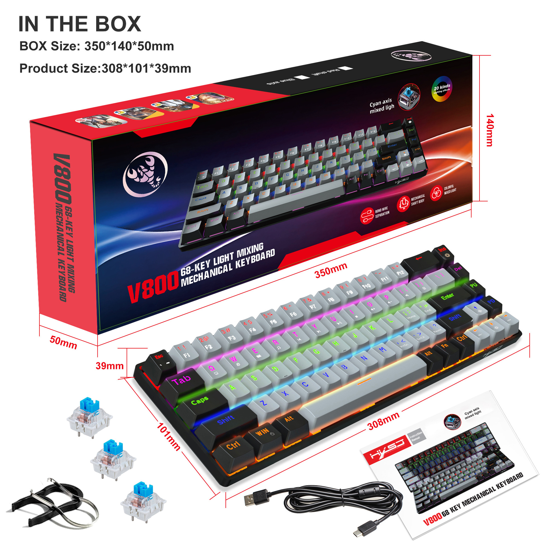 The newly added 68 key blue axis is a pluggable axis, and the packaging diagram is as follows: