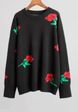 2024 New Fashion Rose Print Round Neck Knitted Sweater Autumn Winter Loose Pullover Sweatshirt_voghion.com