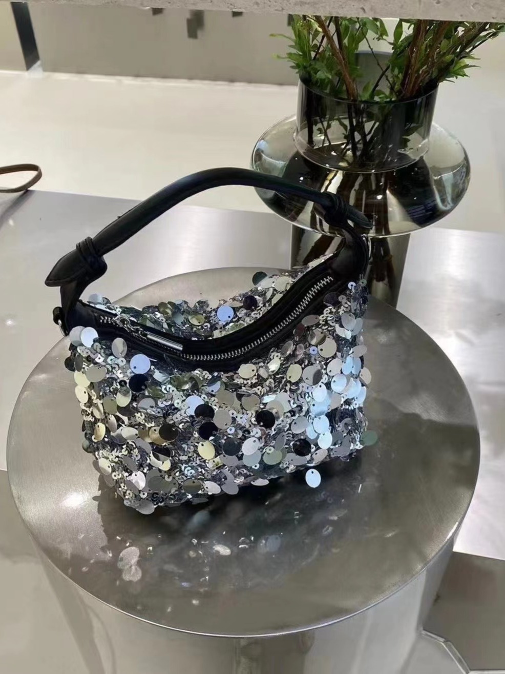 2024 Spring/Summer New Shiny Handheld Lunch Box Bag with Shiny Beads Handheld Bag, Single Shoulder Cross Shoulder Bag, Mobile Phone Bag Trend