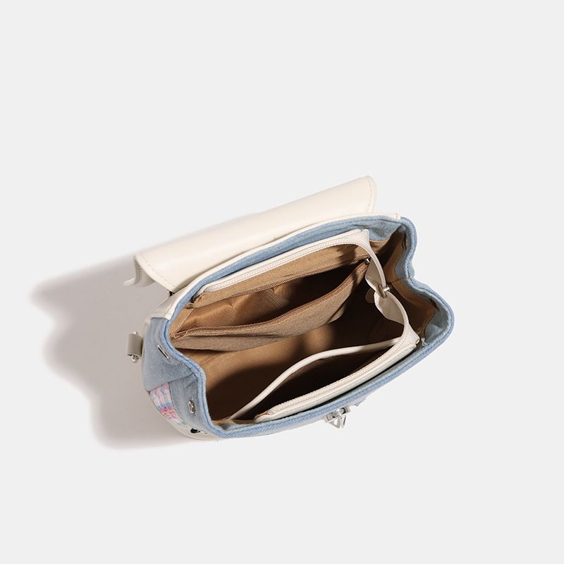 2024 new cute denim contrasting backpack ins student backpack handheld niche backpack for girls