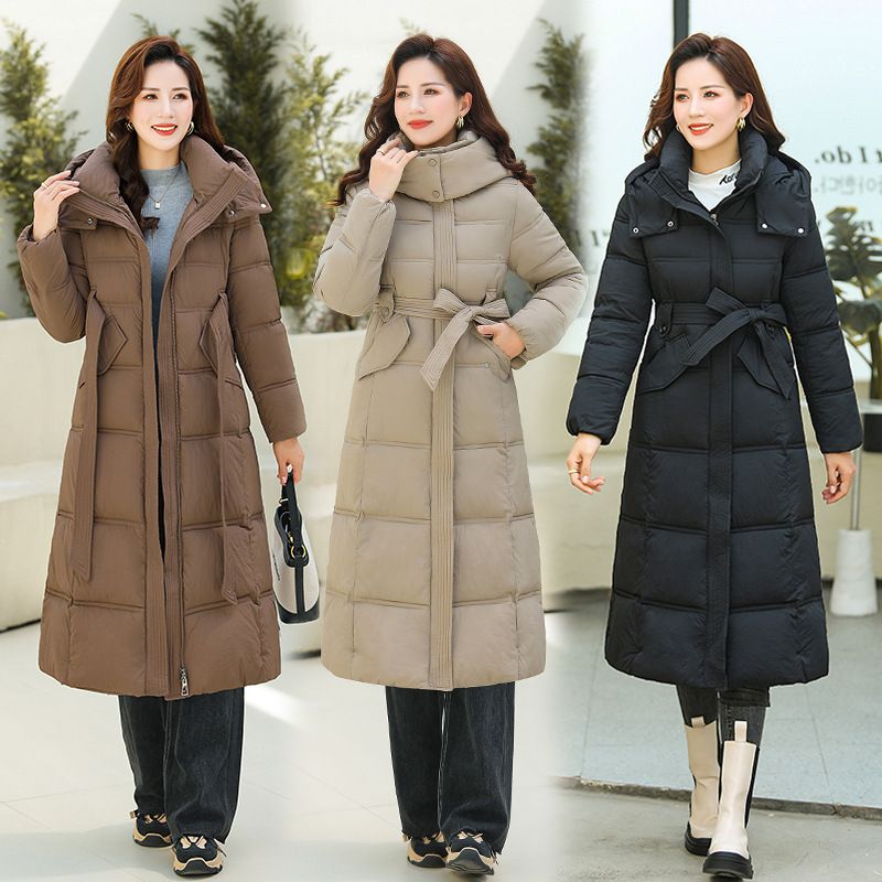 2025 Thick Long Over The Knee Down Winter New Style, Waist Cinching And Slimming Jacket, Middle-Aged Cotton Jacket