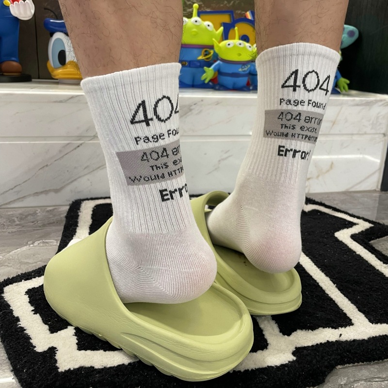 Socks for Men and Women Street Style Personality Ins Trend Letter Skateboard Sports Mid-Calf Socks Versatile High-Waist White Socks