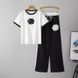 Fashion Women's Knitted Set Summer Round Neck Camellia Short Sleeve Top Elastic Waist Casual Long Pants Two-Piece Set