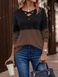 Autumn and Winter New V-neck Cross Contrast Color Splicing Drop Shoulder Sleeve Casual T Top for Women