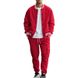 Autumn Winter American Style Stand Collar Baseball Jacket With Fleece Lined Pants Loose Fit Men's Sports Suit