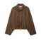 Women's Faux Suede Bomber Jacket – Stylish Stand Collar, Lightweight Polyester, Trendy Streetwear Essential, Brown/Dark Green/Black, XS/S/M/L