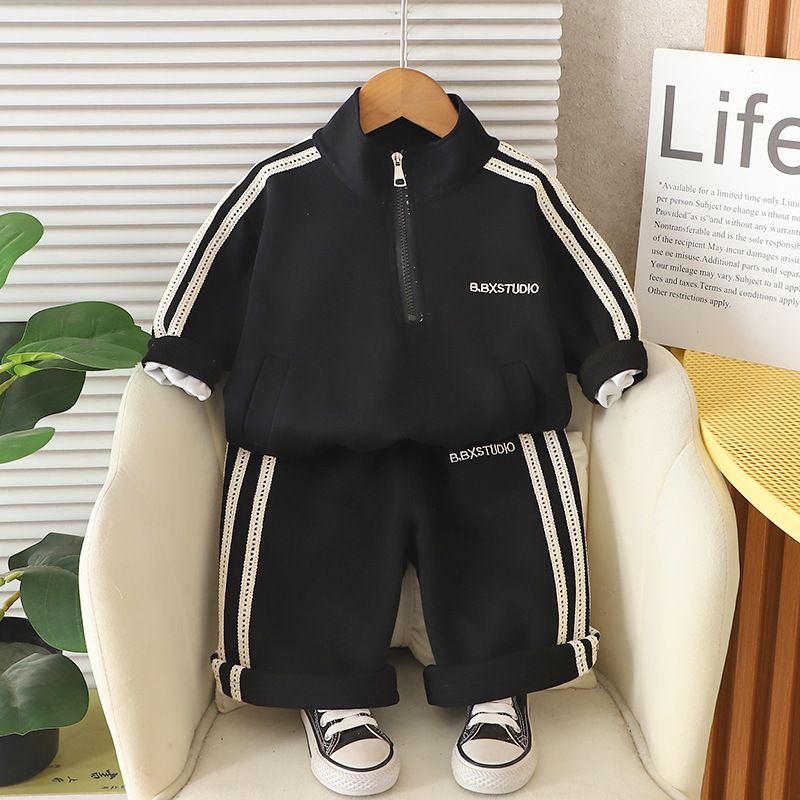 Boys' Spring and Autumn Outfit Set 2025 New Long Sleeve Baby Half-Zip Drawstring Sweatshirt Toddler Casual Two-Piece Set