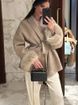 Elegant Lace Up Woolen Short Coat Solid Loose Lapel Furry Belt Long Sleeve Jacket Female 2025 Autumn Winter Lady Chic Cardigan