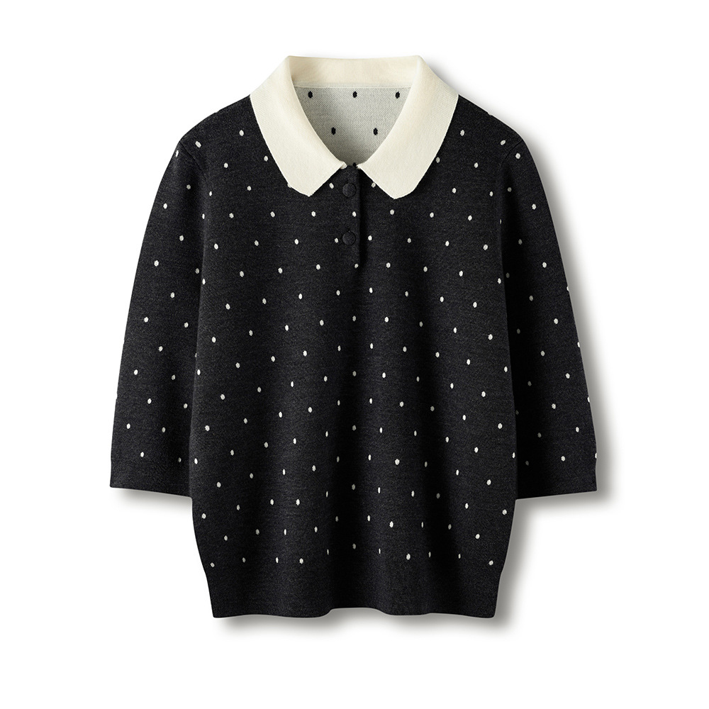 Chic GraceChic GraceChic GraceChic German Yangzi Yarn With Hanging Tag Xiaohe Fine Wool Polka Dot Round Neck Cardigan Polo Collar Sleeve Half