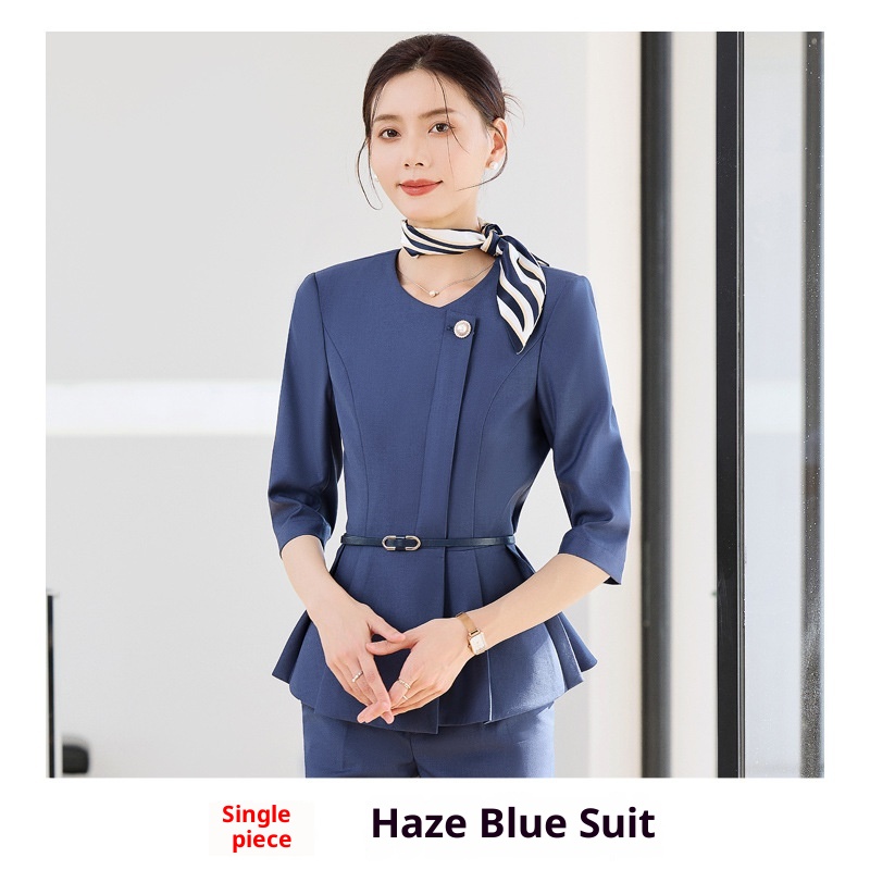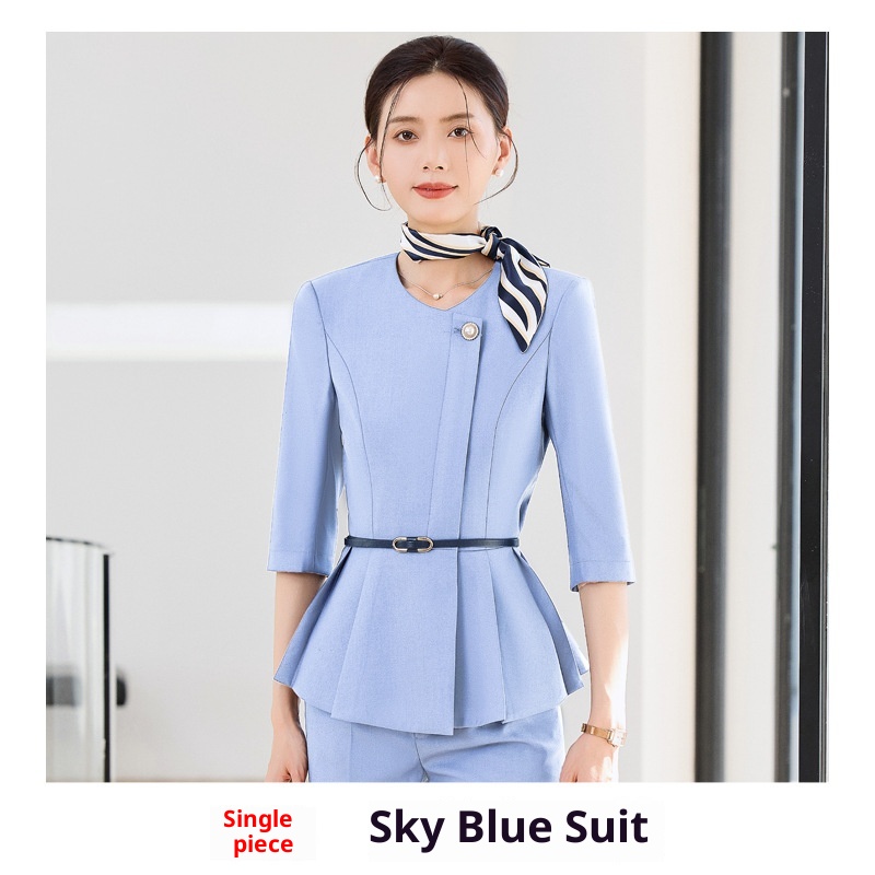 ChicShe 2025 Spring Summer Waist-Cinching Blue High-End Fashion Mid-Sleeve Top Women's Pants Skirt Beauty Salon Professional