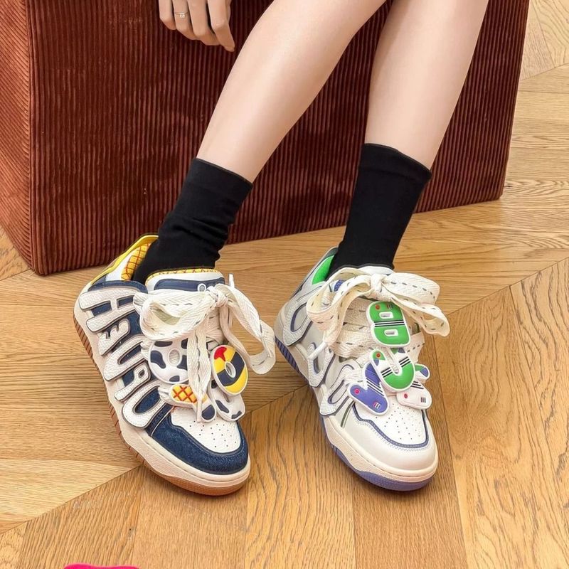 China-Chic Mandarin Duck Shoes Bass Lightyear Shoes Women's Letter Bread Shoes Sports Skateboarding Shoes Casual Shoes High rise Shoes Women