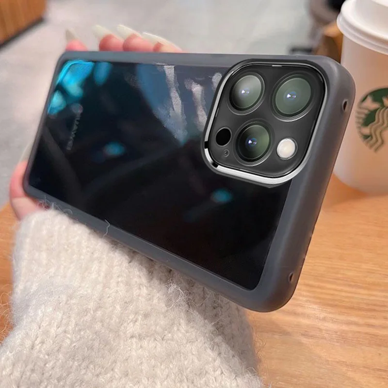 Clear Matte Frame Soft Silicone Case For iPhone 15 14 Pro 13 12 Mini 14 Pro Max 12 11 13 Pro 8 Plus Camera Lens Protector Cover