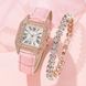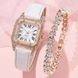 Dámská móda Trend Elegantní čtvercový ciferník Pásek Quartz hodinky + náramek s kamínky