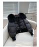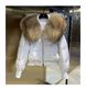 Dámské oblečení, módní krátká péřová bunda, dámská luxusní dámská bunda 90. let, bílá kachní peří, límec z lišky