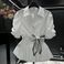 Dámské oblečení Novinky Košile s krátkým rukávem, šátek do pasu, bílá dámská košile s tříčtvrtečním rukávem, evropský styl
