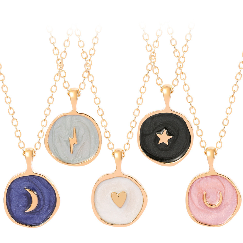 Dámský obojek s dlouhým řetízkem z nerezové oceli se srdíčkem a modrým okem, sluncem, připravený ke koupi. Roztomilý pes, včela, slon, zlatý přívěsek, náhrdelník.
