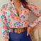 Dámský oděvní oblek, lehký, známý digitální tisk, stojánek, límec, košile s dlouhým rukávem, dámský top