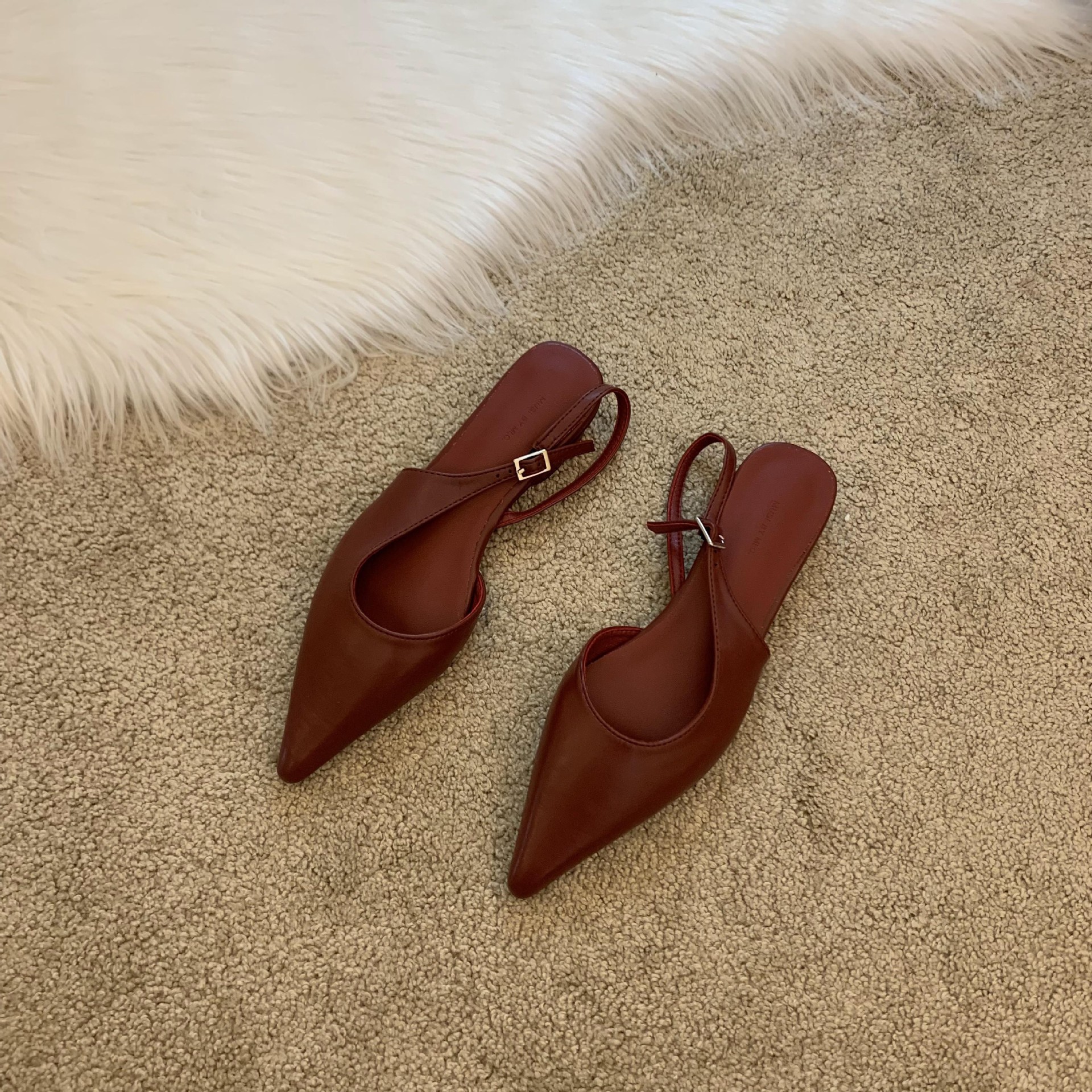 Dámské ploché boty s internetovými celebritami pro jaro a léto 2023, tenký podpatek, špičatá špička, mělká ústa, taštičková špička, kočičí podpatek, pásek, vílí boty
