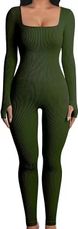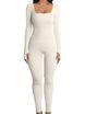 Women's Yoga Suit Ribbed One-Piece Pants Workout Body Shaping Long Sleeve Sports Jumpsuit