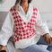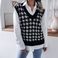 Women's clothing autumn and winter V-neck houndstooth casual loose knitted vest sweater vest women's clothing