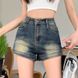 Elastic slim fit, high waisted, versatile denim shorts, women's American distressed base, buttocks wrapped, straight