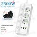 EU Power Strip With 3/5 AC Outlets+2 USB Ports + 1 Type C 6/8-in-1 Plug Adapter 2M Electrical Socket For Home Office