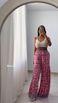Evropské a americké dámské 2025 nové polohovací tištěné kalhoty s vysokým pasem, šněrovací guma s širokými nohavicemi Univerzální kalhoty pro volný čas