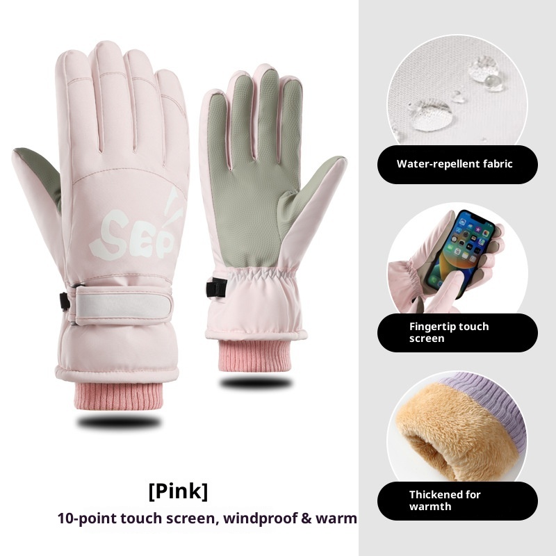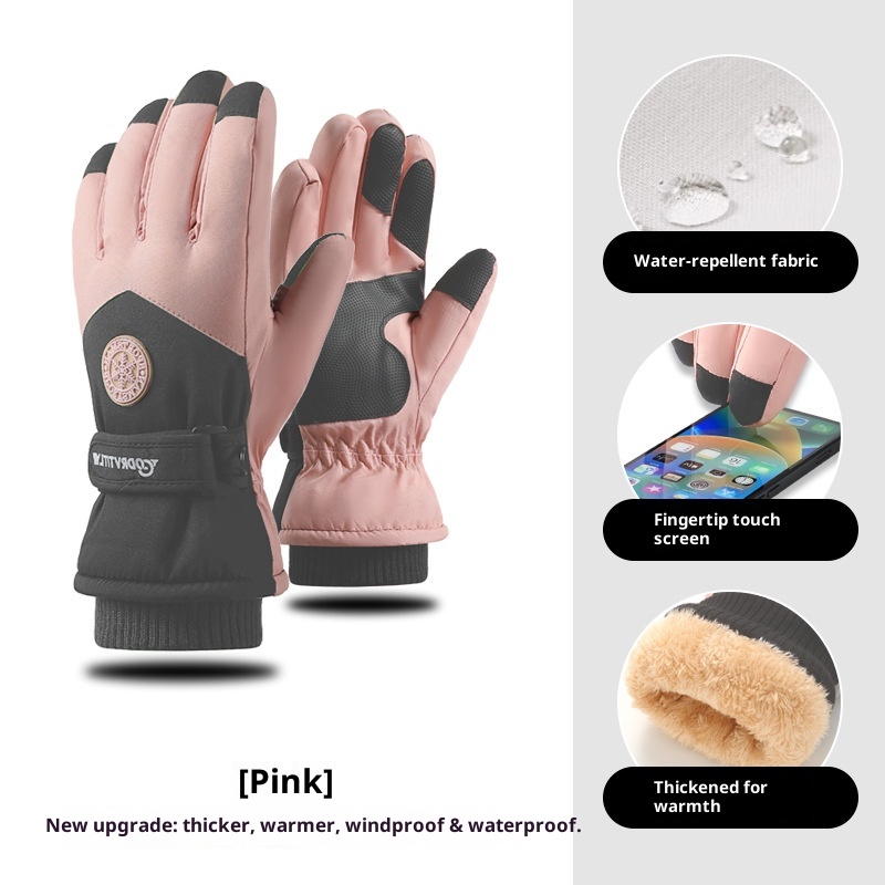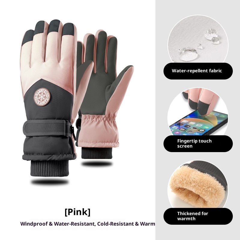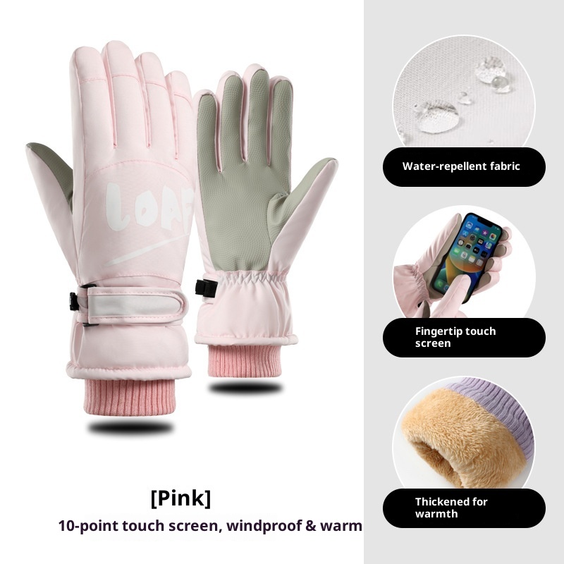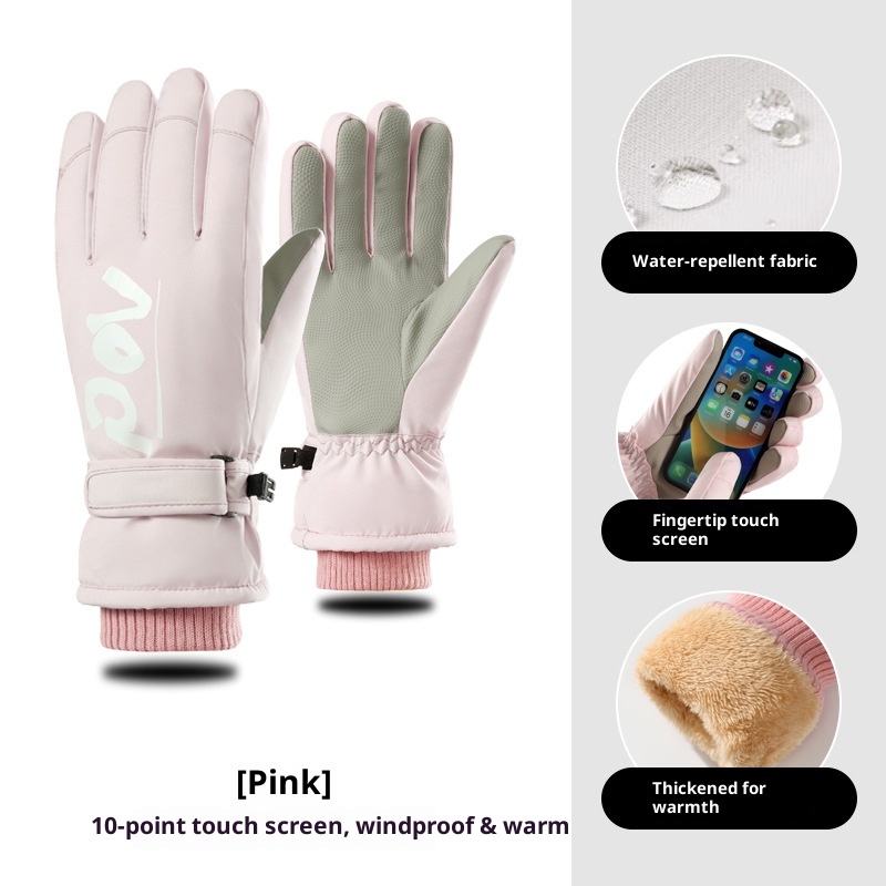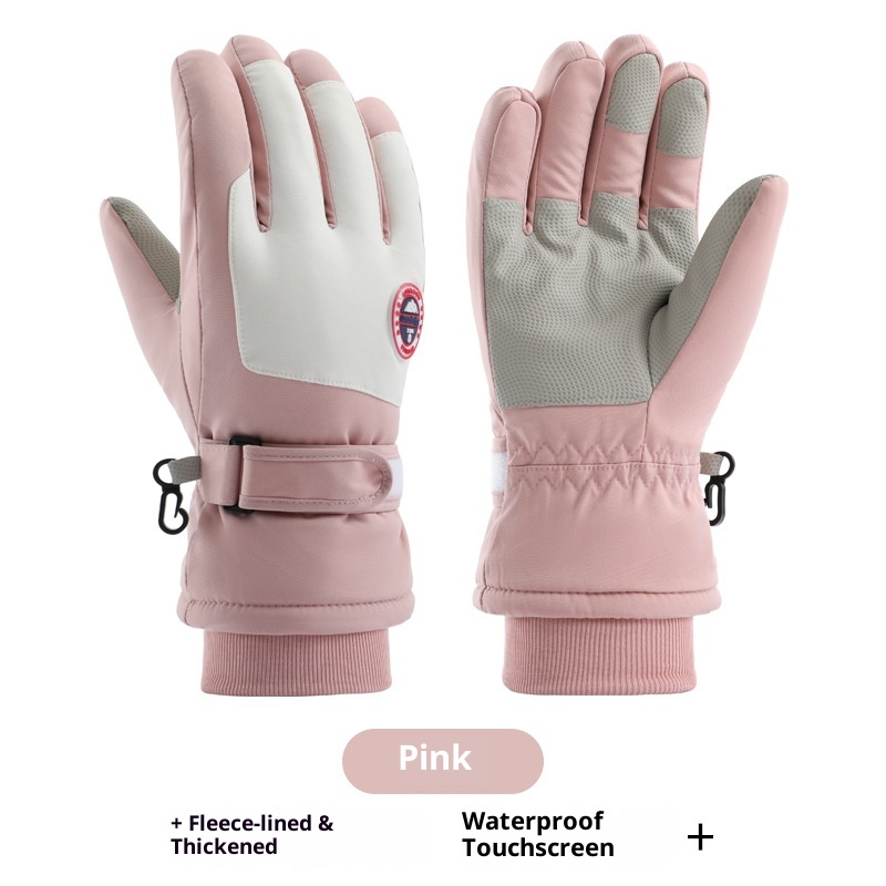 001 Touchscreen Winter Ski For Women With Anti-Lost Buckle, Outdoor Cold-Proof Thickened Fleece-Lined Cycling Warm Gloves