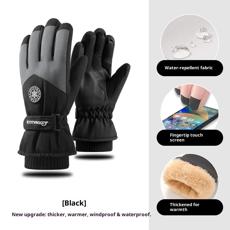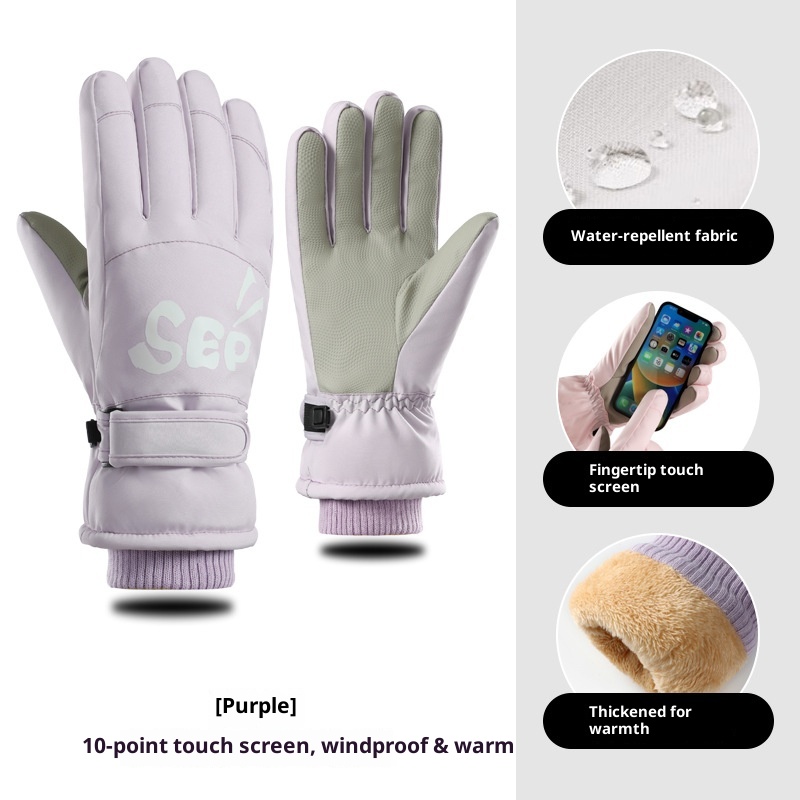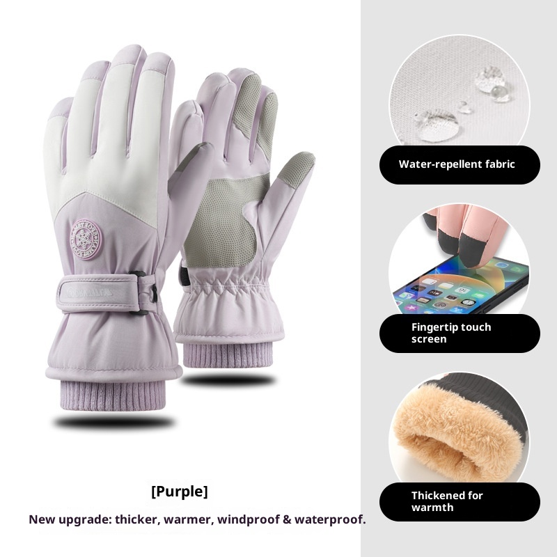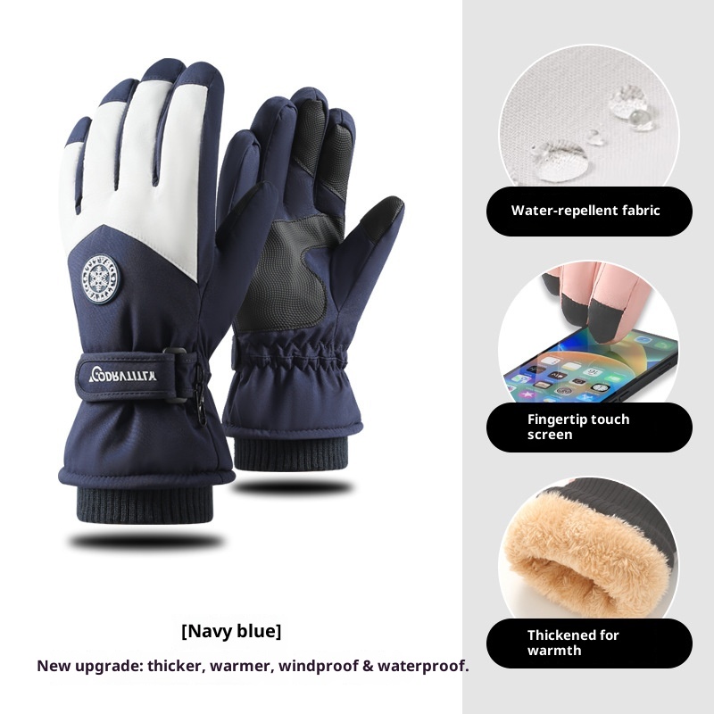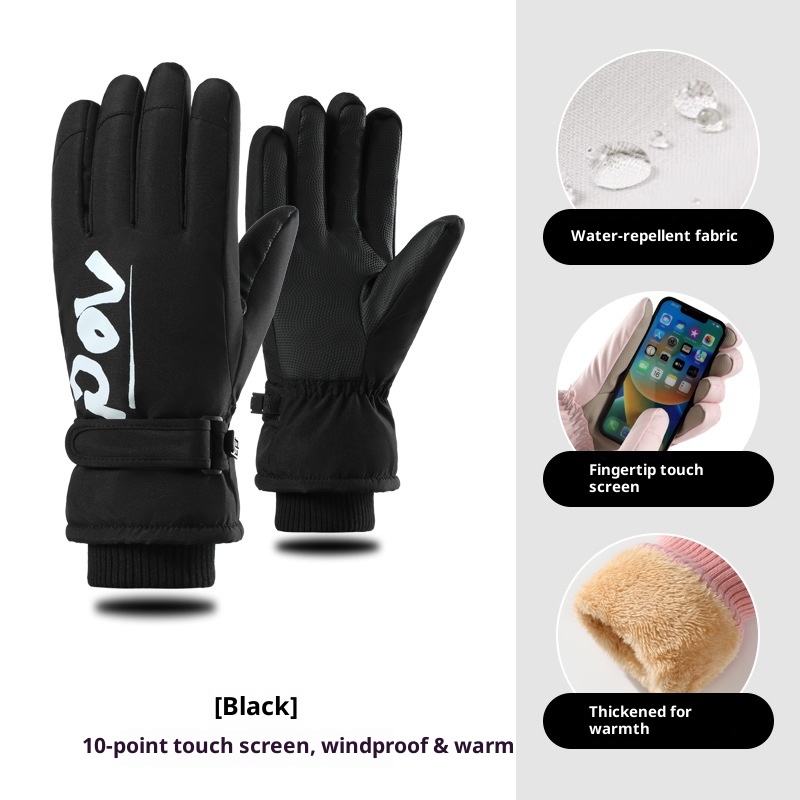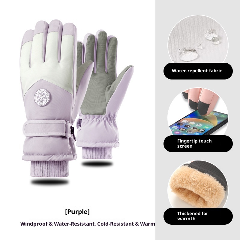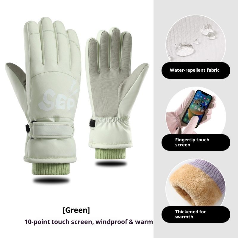 001 Touchscreen Winter Ski For Women With Anti-Lost Buckle, Outdoor Cold-Proof Thickened Fleece-Lined Cycling Warm Gloves