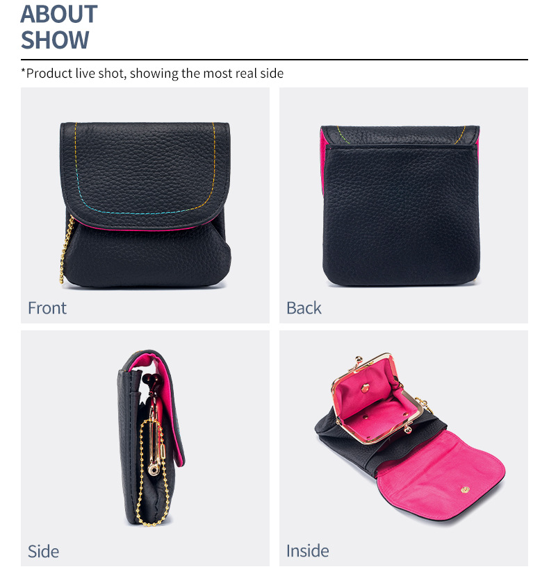 Internally, it can store bank card change, coins, etc., with multiple functions, practicality, and convenience. English version details: