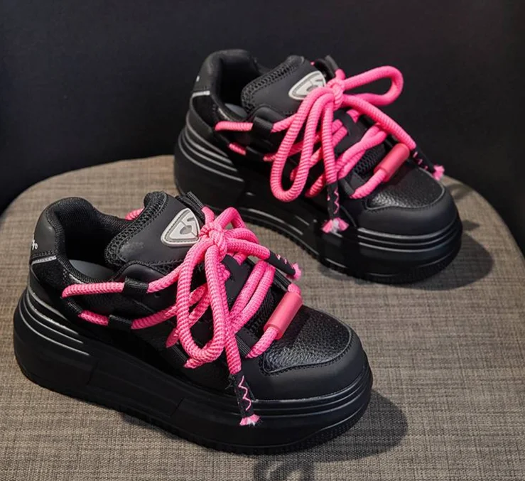 Pravá kůže bílá pro ženy na jaře 2024, nové malé sportovní boty s tlustou podrážkou a piškotovým vzorem, boty na chléb