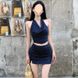 Striped For Women Summer Elegant Scoop Neck Short Halter Top Bodycon Skirt Fashion Two-Piece Set