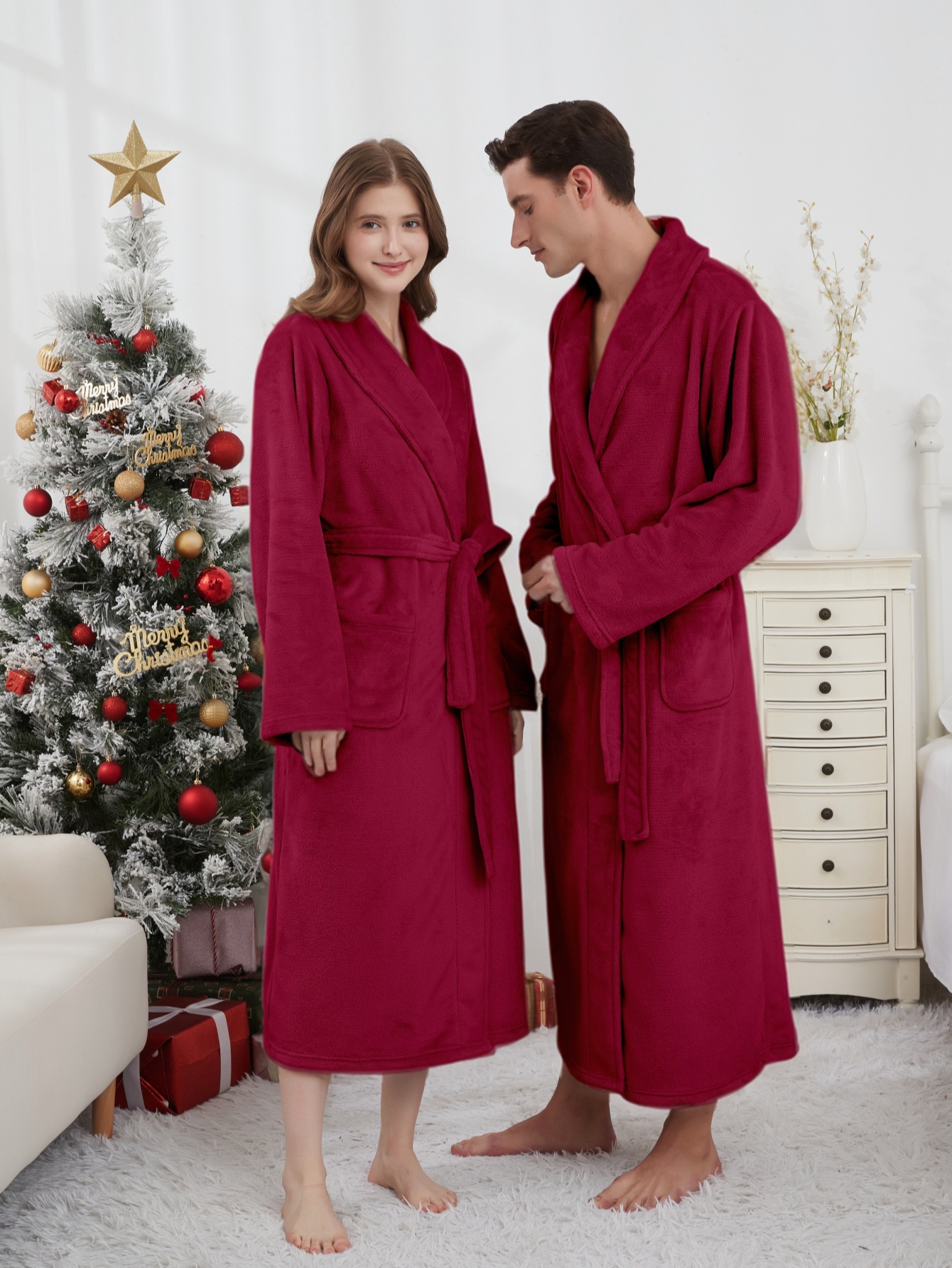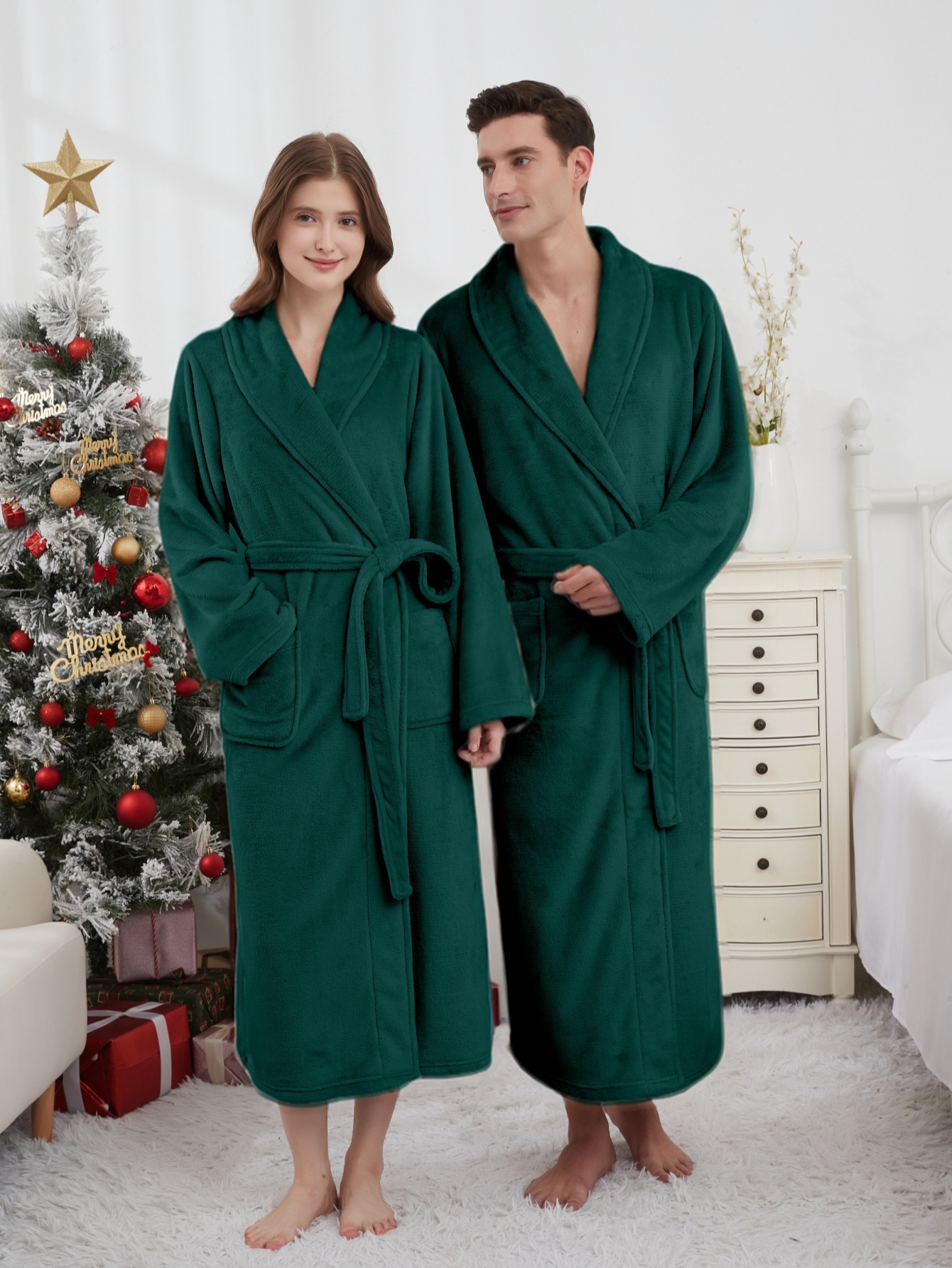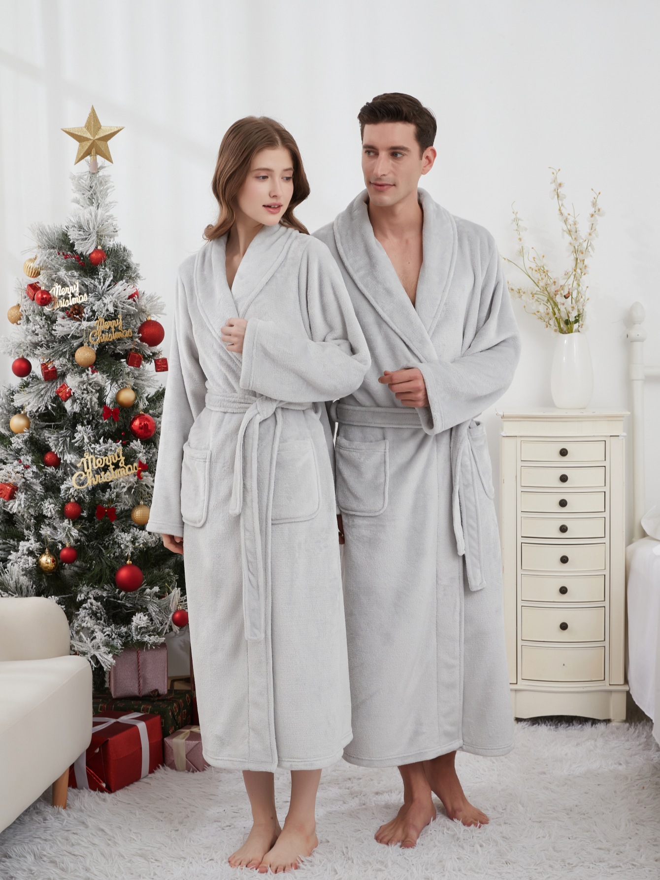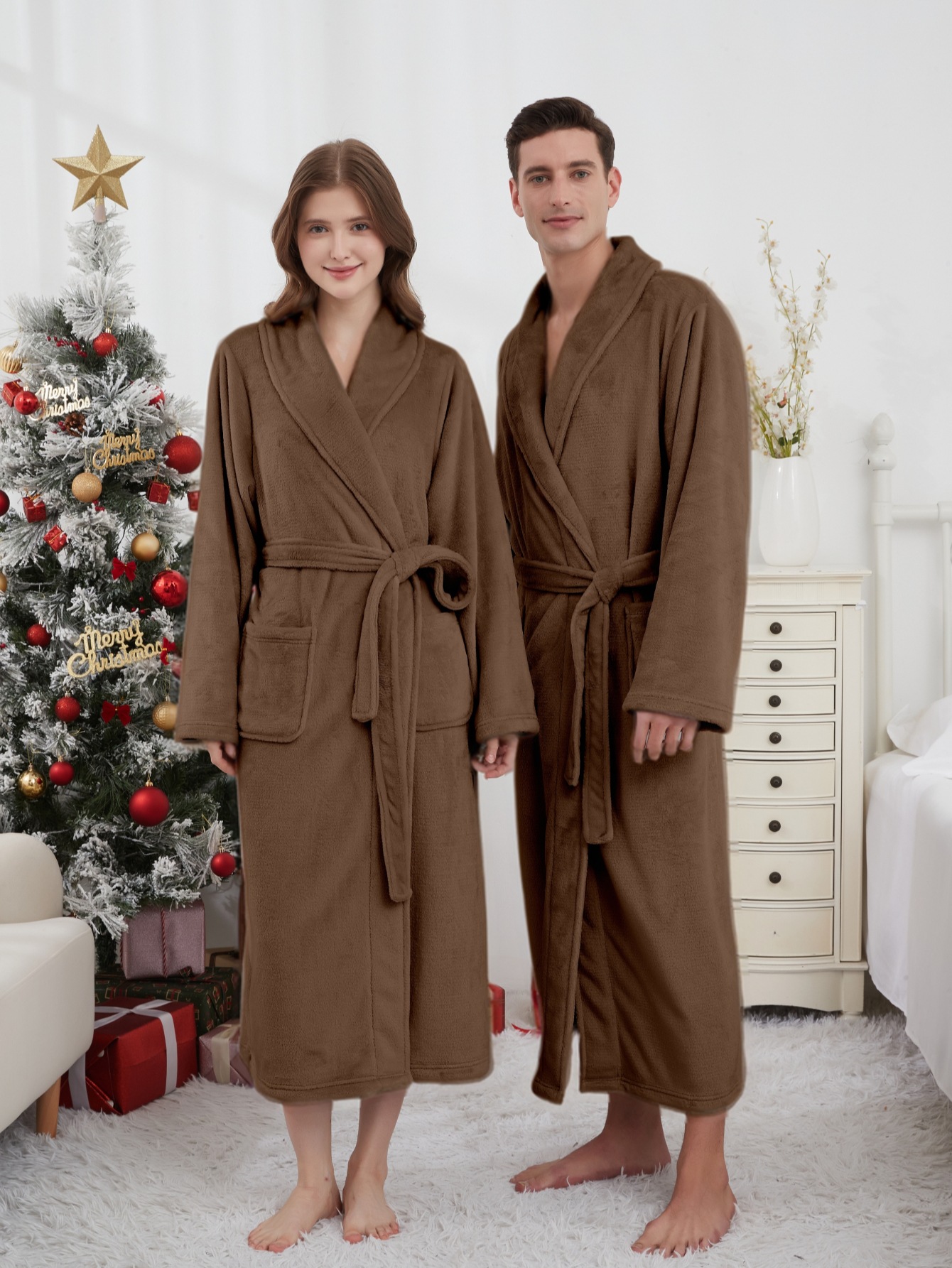 GraceChic GraceChic Autumn Winter Thick Men Plus Size Flannel Long Bathrobe Couple Warm Pajamas Women European American Homewear