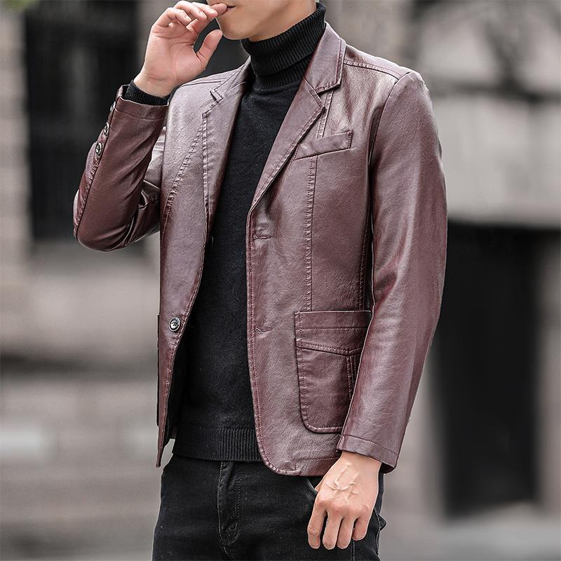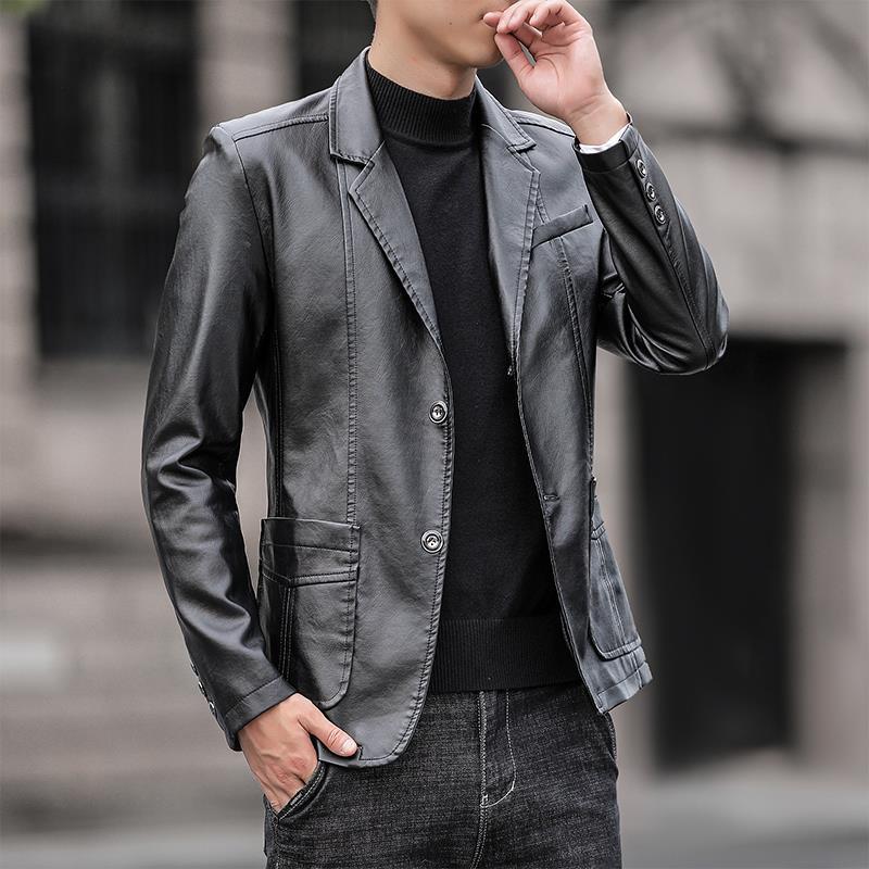 Pánské oblečení Velkoobchod kožené bundy pro muže jarní nové kožené bundy módní slim fit malé oblekové kožené bundy pohledný ležérní všestranný