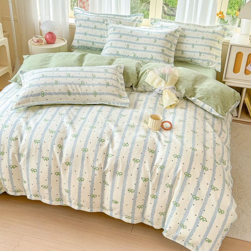Ins Brushed Four-Piece Fresh Style Thickened Dormitory Washed Cotton Bed Sheet Quilt Cover Three-Piece Set