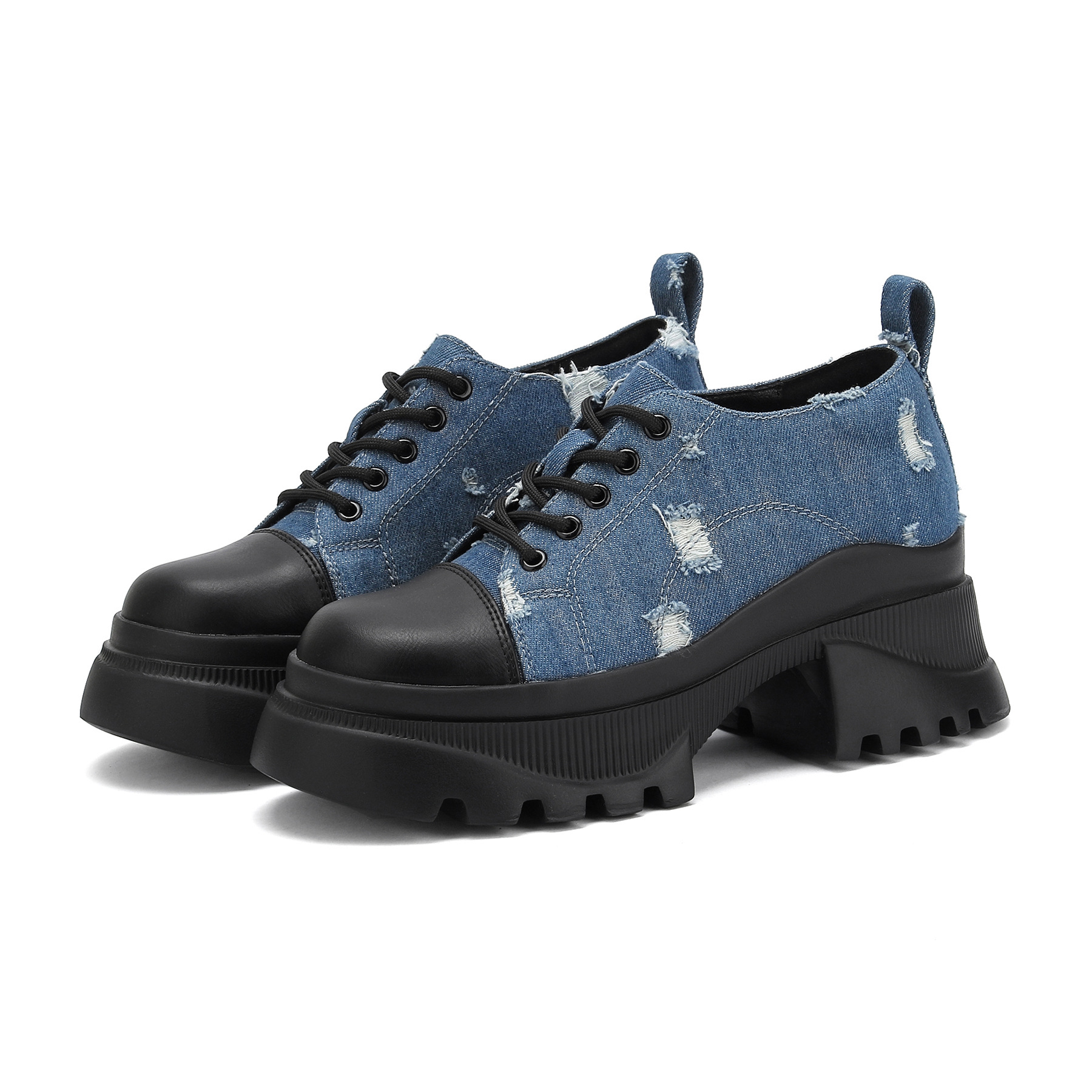 Biscuit big toe increased height and thick soles, seasonal casual shoes, denim canvas shoes for women with pants