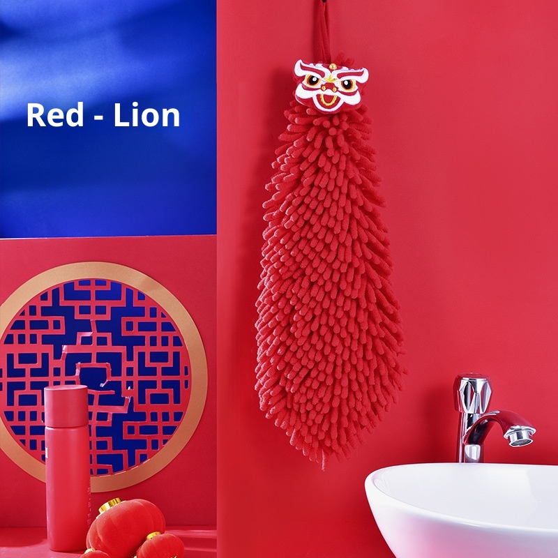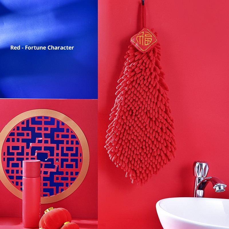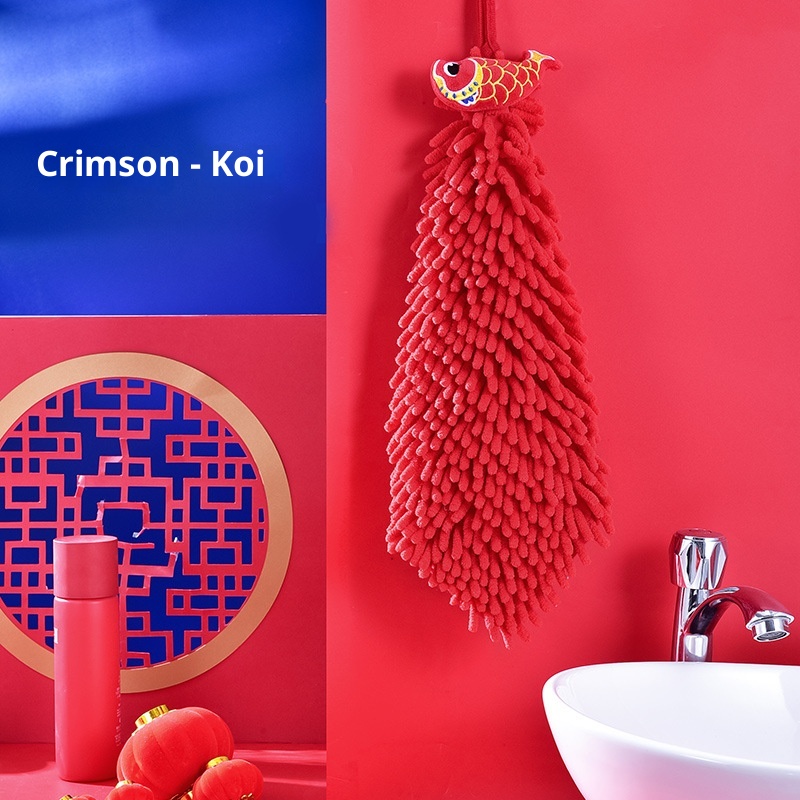 Lillian New Year Koi Chenille Creative Gift Kitchen Hanging Absorbent Hand Ball Red Towel