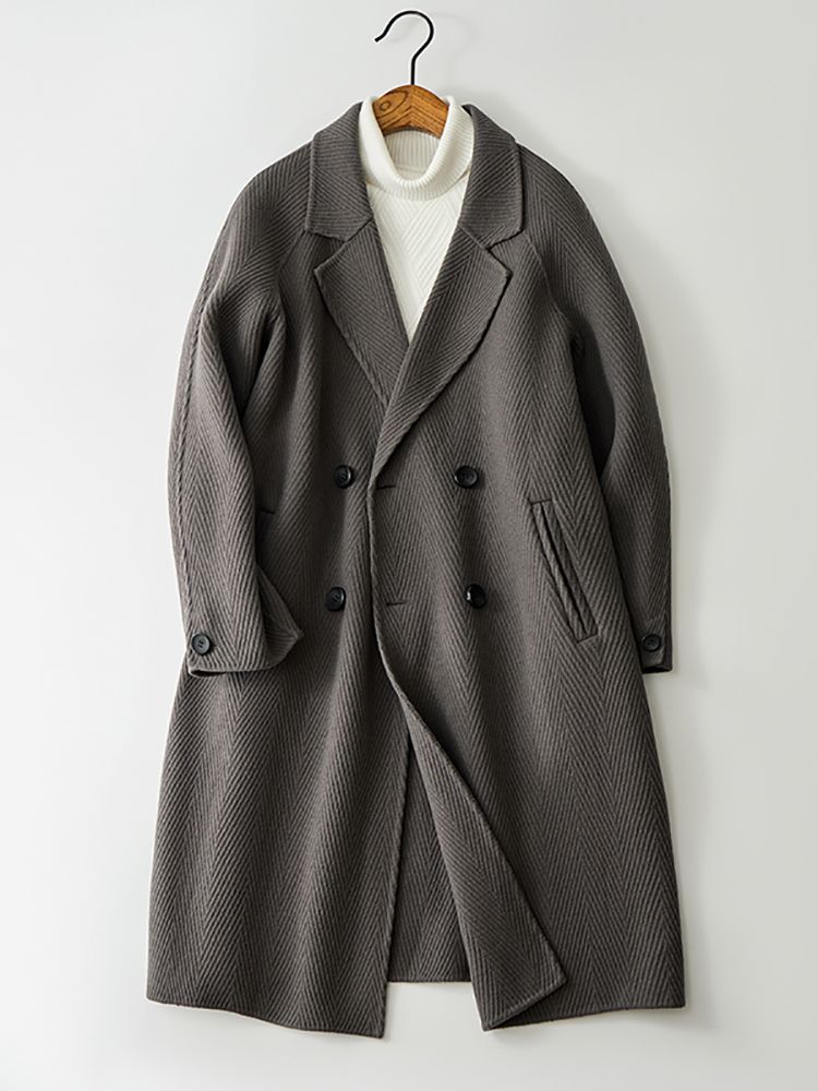 Luxury Double-Sided Wool Coat for Men, Business Gentleman Wool Trench Coat, Mid-Length Over-the-Knee Wool Overcoat