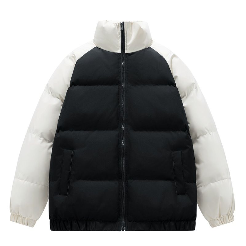 Men's Winter Cotton Jacket Couple Stand Collar Thickened Warm Color Block Cotton Coat Trendy Brand Jacket Plus Size Puffer Jacket