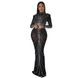 Dámské oblečení na podzim a zimu, sexy síťovaný oblek s dlouhým rukávem a dvoudílnou sukní Hot Diamond