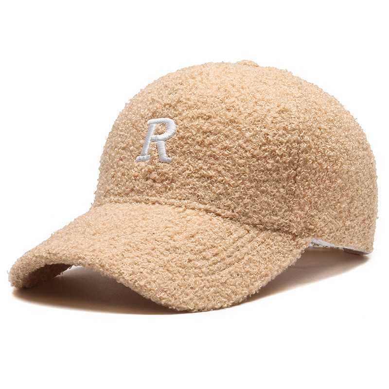 Čistá červená jehněčí srst písmeno R dámská podzimní a zimní móda ležérní malá teplá čepice s kachním jazykem