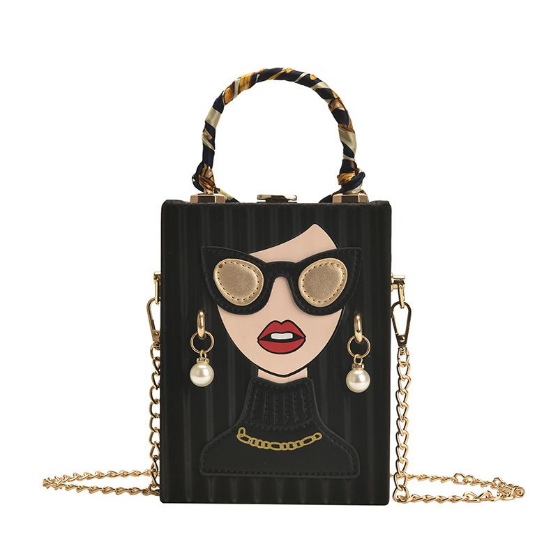 New Box Banquet Bag Personalized Graffiti Phone Bag Retro Chain Phone Bag
