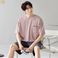Polyester Material:Crafted from high-quality polyester, this men's sleepwear offers a comfortable and breathable sleep experience. Versatile Use:Perfect for various scenarios such as hotel stays, bathrooms, and wedding photography shoots, this sleepwear sets the bar for versatility. Youth- Focused Design: Designed with young men in mind, this sleepwear set boasts a stylish and trendy look that appeals to the youthful population. Short Sleeve Style: Featuring a short sleeve design, it's ideal for summer use, providing a cool and relaxed sleep environment. Round Neckline:The round neckline adds a touch of sophistication and simplicity to the overall design, making it a perfect fit for any outfit. Suitable Weight:With an average weight of 161-180 grams per square meter, this sleepwear strikes a perfect balance between lightweight and durable.
