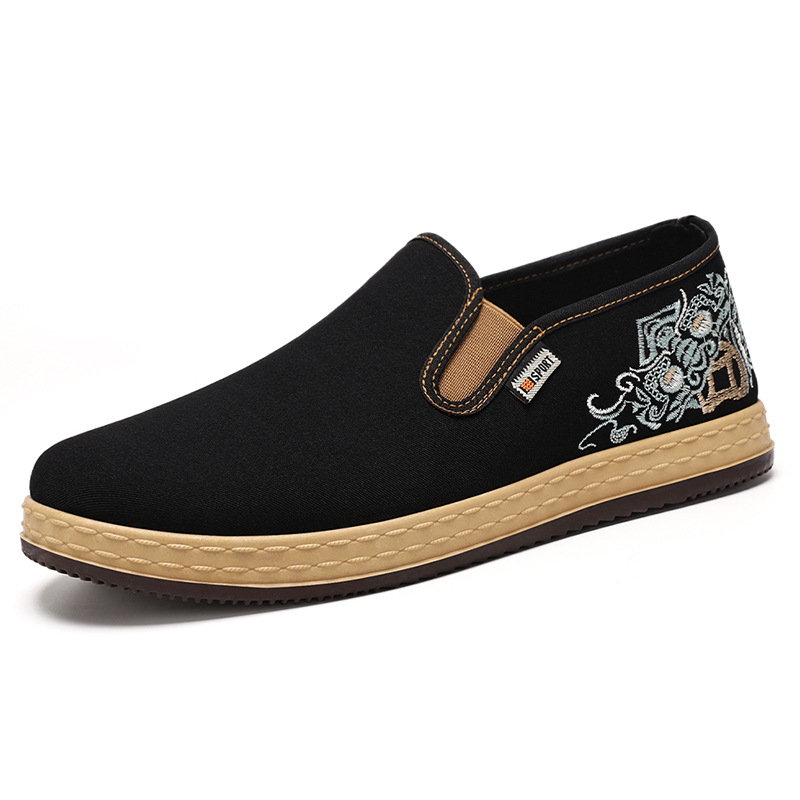 Pánské boty nové čínské vyšívané plátěné boty v etnickém stylu s mělkými ústy, jednoduché boty s jedním pedálem, běžné boty staré pekingské látkové boty