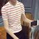 Pánské oblečení s krátkým rukávem, tričko s krátkým rukávem, pánská značka, módní univerzální pruhované mládežnické tričko s kulatým výstřihem a spodním dílem