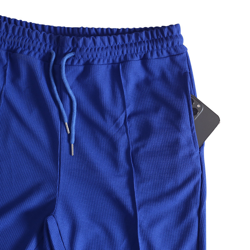 Waffle Long sleeved Spliced Stand up Neck Fashion Half Zipper Casual Sports Set Men's
