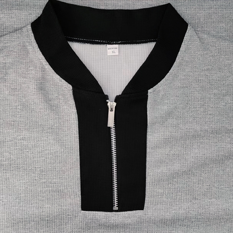 Pánský top s dlouhým rukávem, stojáčkem a vaflovým výstřihem, módní poloviční zip, ležérní sportovní set